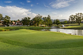 |  | | This long par 5 is the most difficult on the course. With water close to the left side of the landing area, it is better to keep to the right on the tee shot. Having successfully negotiated that, you must then master an uphill shot into a narrow landing area with bunkers on the right and a coconut grove on the left. The short third shot is also uphill towards the large green. |